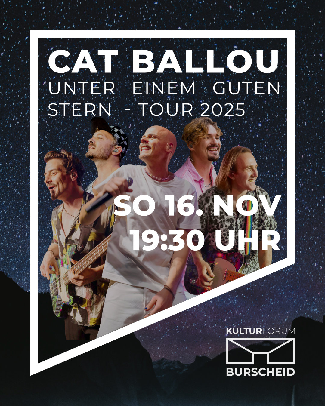 Am 16. November wird’s laut, herzlich und richtig kölsch bei uns im KulturForumBurscheid: Cat Ballou kommen – und bringen ihre „Unter einem guten Stern“-Tour mit.